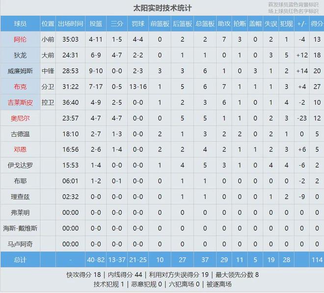 湖人全队单节8次失误,太阳完成5次抢断。本赛季太阳场均10.8次抢断,高居联盟第一。首节战罢,太阳36-31领先湖人。艾顿单节4中4拿到8分4篮板,但湖人外线只有8中2。第二节湖人依然没解决失误问题,东契奇单节出现4失误。