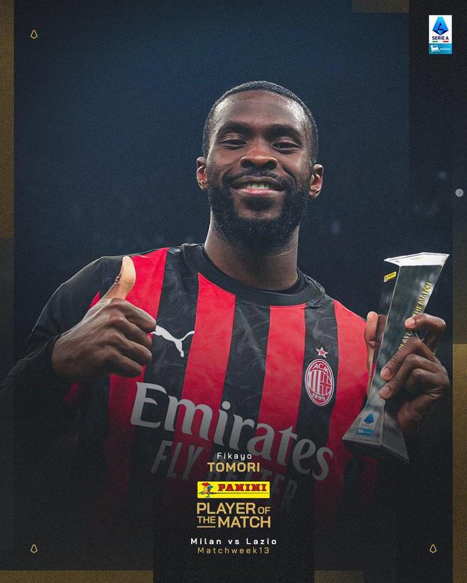 官方消息,托莫里当选米兰对阵拉齐奥一役全场最佳。
