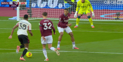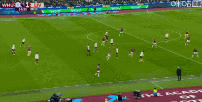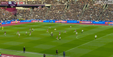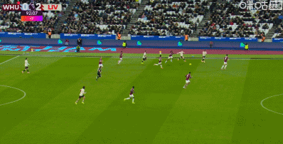 第90+2分钟,西汉姆联后卫冒顶,加克波门前半转身破门完成传射,利物浦2-0领先